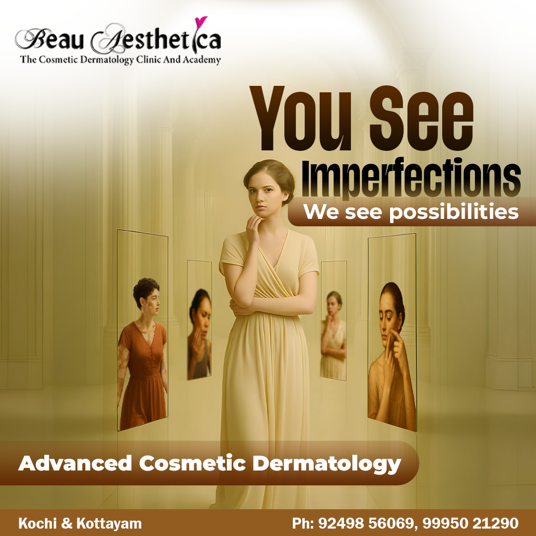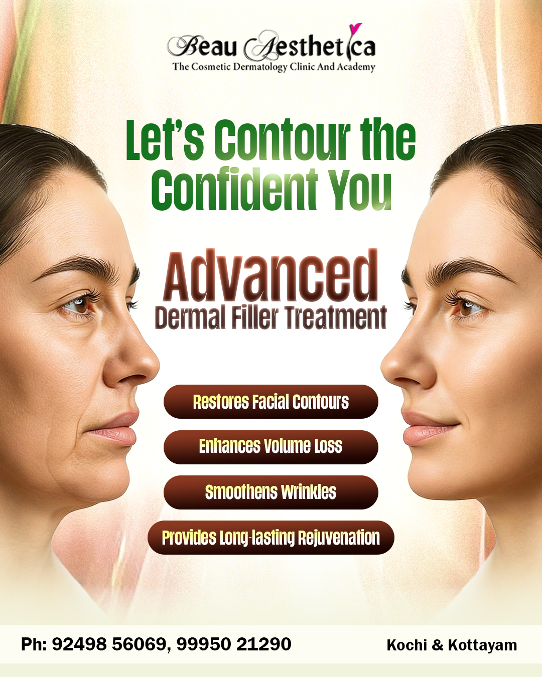 Beau Aesthetica is the best dermatology clinic in Kochi, specializing in advanced skin and hair care treatments, customized to meet your unique needs. The expert team, led by Dr. Meera James, a cosmetic dermatologist with 22 years of experience specializing in consultations, offers treatments including Thread Lift, Excessive Sweating Treatment, Skin Booster, and Hand Rejuvenation. We address various concerns such as stretch marks, dandruff-related hair fall, acne and its scars, and black peel treatments. Our services also include Botulinum Toxin Injections, Filler Treatments, Radiofrequency Anti-Aging, Hair Treatment, Laser Treatments, Electroporation, Dermaroller, and Revita Glow Infusion Therapy. As a leading cosmetic dermatology clinic in Kochi, we ensure that each treatment is delivered with precision and care to help you achieve radiant, youthful skin.